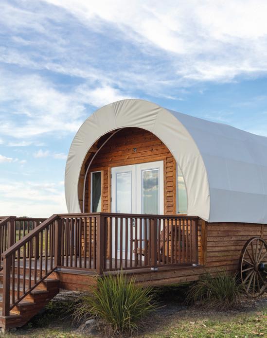 "roughing" it? Glamping (glamorous camping) is the perfect way to experience the great outdoors, but with the amenities of a resort. If you're ready to take it to the next level, you can rent a Luxe Teepee. Each Luxe Teepee is themed in authentic Native American style and comes fully furnished with private bathrooms, air conditioning, wood floors, a fireplace and more. For a truly extraordinary vacation, the Luxe Conestoga Wagons are the way to go! Step into your very own wagon and experience a world of luxury with upscale interiors while still being one with nature. Enjoy the beautiful outdoors without missing the essential comforts of home.