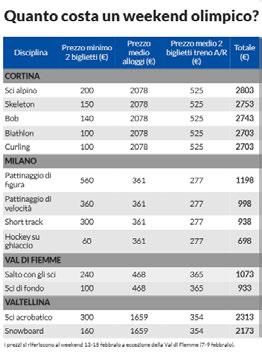 do dare un ordine di grandezza, la tratta Milano-Cortina, andata e ritorno, costa circa 216 euro, mentre per chi arriva da Torino e Roma il prezzo naturalmente cresce (anche perché aumentano i chilometri), rispettivamente, a 318 e 338 euro.