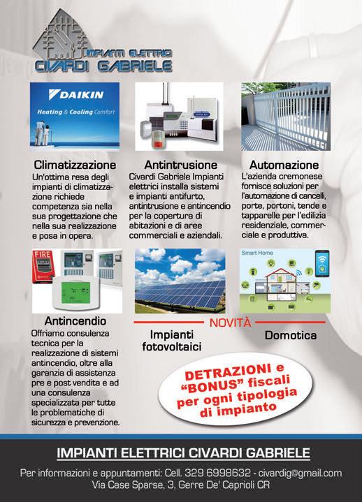 Lo ritiri fuori dallo Zini prima della gara MARTEDÌ TORNA IL MAGAZINE DELLA CREMO SCUOLE ELEMENTARI: 1 SU 5 NON SA SCRIVERE IN CORSIVO xx a pagina - CULTURA Galletti a pagina 5 Direttore responsabile: Daniele Tamburini • Società editrice: U.P. Uggeri Pubblicità srl • Amministrazione e diffusione: Corso XX settembre 18, Cremona - tel. 0372 20586 • Autorizzazione del Tribunale di Cremona n° 5/2017 del 26/10/2017 Redazione: Corso XX Settembre 18, Cremona - tel. 0372 20586 • ilpiccolocremona@gmail.com • Stampa: Industria Grafica Editoriale Pizzorni I.G.E.P. Srl - Cremona • Pubblicità: U.P. Uggeri Pubblicità srl • 0372 20586 • info@uggeripubblicita.it MAURIZIO COSTANZO IL GIORNALISTA TV È MORTO A 84 ANNI LUTTO a pagina 13 MELONI: L’UCRAINA DIFENDE VALORI E IDENTITÀ EUROPEI GUERRA a pagina 13 ISSN 2724-4385 Anno VII • n° 8 • SABATO 25 FEBBRAIO 2023 Periodico • € 0,02 copia omaggio CREMONA Via antiche fornaci 18 0372 434 339 info@ferramentabarbieri.com RIPARAZIONE ZANZARIERE FORNITURA Zanzariere Tapparelle Veneziane Tapparelle CA’ DEL FERRO • La relazione del Garante: sovraffollamento, proteste, tentati suicidi Raineri a pagina 6