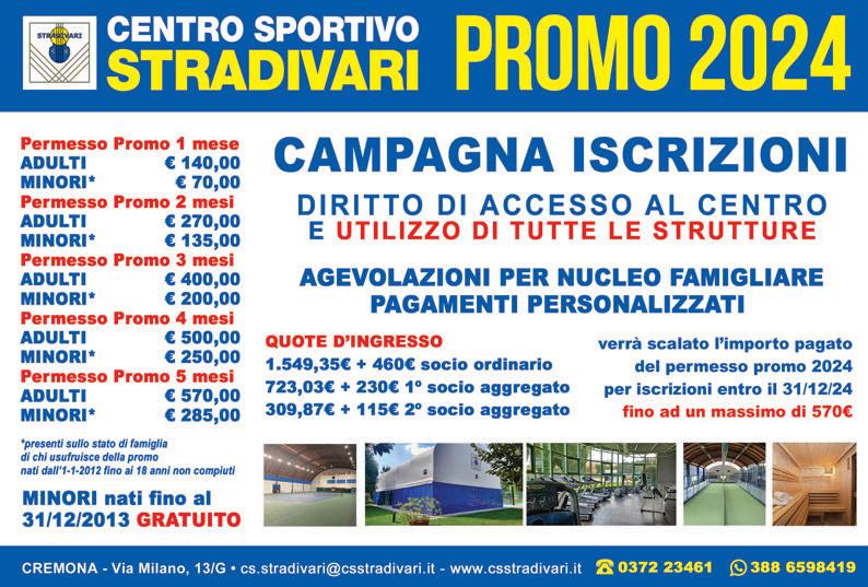 Direttore responsabile: Daniele Tamburini • Società editrice: U.P. Uggeri Pubblicità srl • Amministrazione e diffusione: Piazza Fiume 17, Cremona - tel. 0372 20586 • Autorizzazione del Tribunale di Cremona n° 5/2017 del 26/10/2017 Redazione: Piazza Fiume 17 Cremona - tel. 0372 20586 • ilpiccolocremona@gmail.com • Stampa: Tipre Srl - Busto Arsizio (VA) • Pubblicità: U.P. Uggeri Pubblicità srl • 0372 20586 • info@uggeripubblicita.it Settimanale d'informazione • Non riceve alcun finanziamento pubblico ISSN 2724-4385 Anno VIII • n° 9 SABATO 2 MARZO 2024 Periodico • € 0,02 copia omaggio LO STUDIO Nel rapporto tra comunicazione e guerra un dato choccante: azioni belliche “coperte” dai grandi eventi Virgilio prepara il suo progetto COMUNALI Fornasari a pagina 5 Raineri a pagina 8 IL DIALOGO IMPOSSIBILE TRA GENITORI E FIGLI Galletti a pagina 6 edizione chiusa alle ore 20 Butta la bomba che c’è lo show Gussola, Belli Franzini replica: Torricella può uscire dall’unione Raineri a pagina 11 Un mese di eventi per ricordare Franco Rotelli Articolo a pagina 10 CASALASCO CASALMAGGIORE CALCIO SERIE BBASKET SERIE A Cremo a Modena per un altro scalpo La Vanoli può già chiudere i conti
