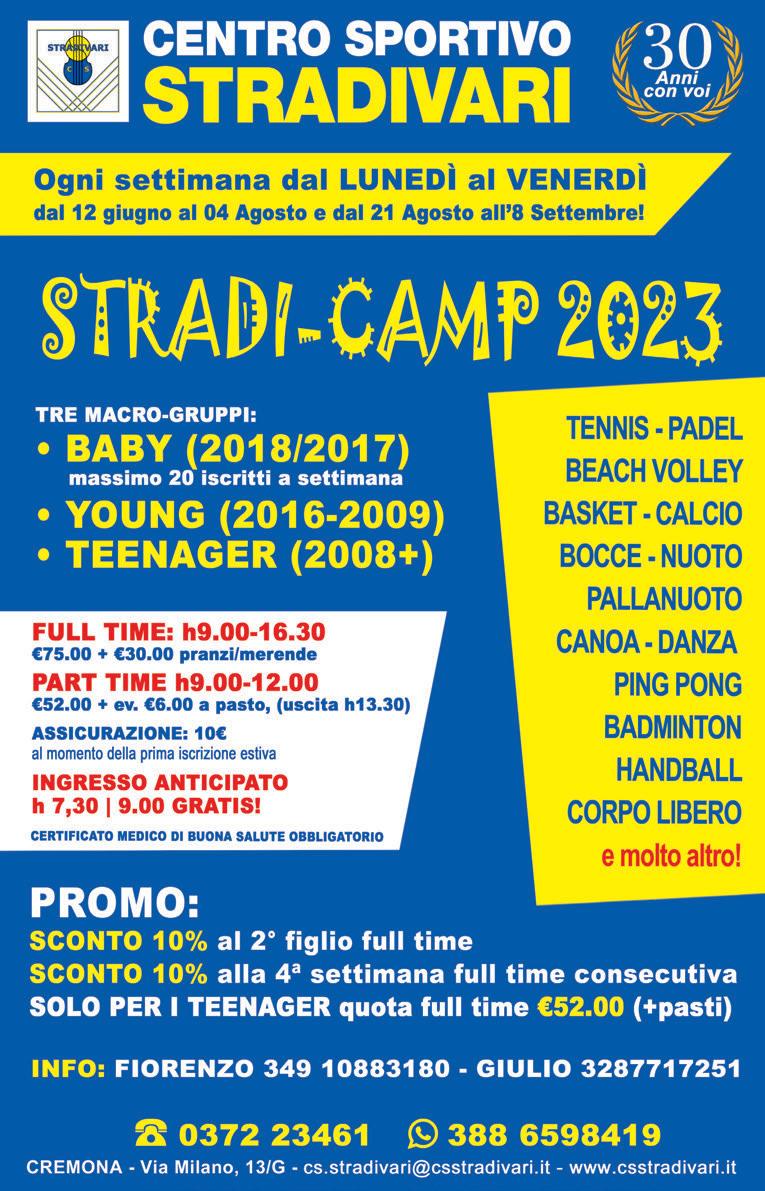 Direttore responsabile: Daniele Tamburini • Società editrice: U.P. Uggeri Pubblicità srl • Amministrazione e diffusione: Corso XX settembre 18, Cremona - tel. 0372 20586 • Autorizzazione del Tribunale di Cremona n° 5/2017 del 26/10/2017 Redazione: Corso XX Settembre 18, Cremona - tel. 0372 20586 • ilpiccolocremona@gmail.com • Stampa: Tipre Srl - Busto Arsizio (VA) • Pubblicità: U.P. Uggeri Pubblicità srl • 0372 20586 • info@uggeripubblicita.it Silvio Berlusconi di nuovo ricoverato al San Raffaele Settimanale d'informazione • Non riceve alcun finanziamento pubblico Asaps: troppi i pedoni uccisi in Italia nel 2023 ISSN 2724-4385 Anno VII • n° 23 • SABATO 10 GIUGNO 2023 Periodico • € 0,02 copia omaggio INDAGINE La moda vegana, cani e gatti in Parlamento, ma anche maltrattamenti e i “soliti” abbandoni Preferiamo gli animali