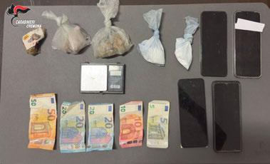 ti nella frazione di Castelnuovo Gherardi dove sono stati circondati dai veicoli dell’Arma. Due di loro sono riusciti a scendere dal mezzo e a scappare a piedi, ma uno è stato raggiunto e bloccato dopo alcune centinaia di metri di corsa nei campi. Sul furgone, guidato dal 36enne non coinvolto nello spaccio, è stato ritrovato un loro marsupio contenente 114 grammi circa di eroina, 36 di cocaina e 32 di hashish, un bilancino di precisione, vari telefoni e la somma di oltre 100 euro, ritenuta provento dell’attività di spaccio. Sono stati accompagnati presso la caserma di Cremona dove i due 19enni sono stati dichiarati in arresto per spaccio e detenzione ai fini di spaccio di stupefacenti, mentre il 36enne è stato denunciato per favoreggiamento personale. I due sono stati accompagnati al carcere di Cremona, e l’udienza di convalida di ieri ha disposto la custodia cautelare in carcere. Inoltre, i Carabinieri della Stazione di Vescovato hanno ritrovato nei pressi di alcuni canali di irrigazione due zaini con all’interno quasi quattro chilogrammi di marijuana.
