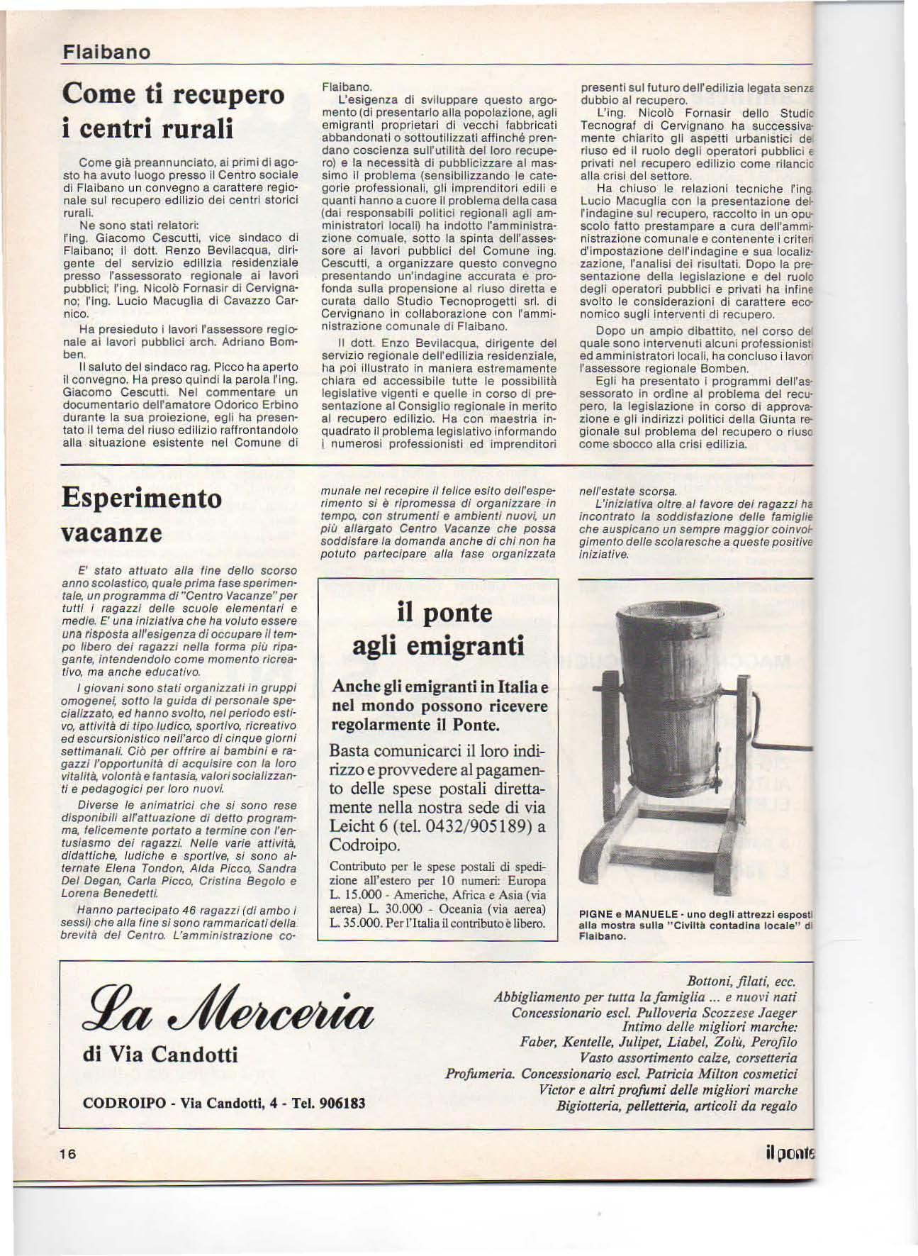 La collaborazione è aperta a tutti. " Il Ponte" si riserva in ogn i caso il diritto di rifiutare qualsiasi scritto o inserzi one. Manoscritti e foto anche se non pubblicati non si restituiscono. Tutti l diritti riservati.