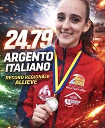 i Campionati italiani Allievi/e svoltisi ala Palaindoor di Ancona, durante la mattinata di domenica 15 febbraio, la nostra velocista stabilisce il record regionale allieve in batteria sui 200 mt con 25”05, tempo che le consente di agguantare la finale del pomeriggio.