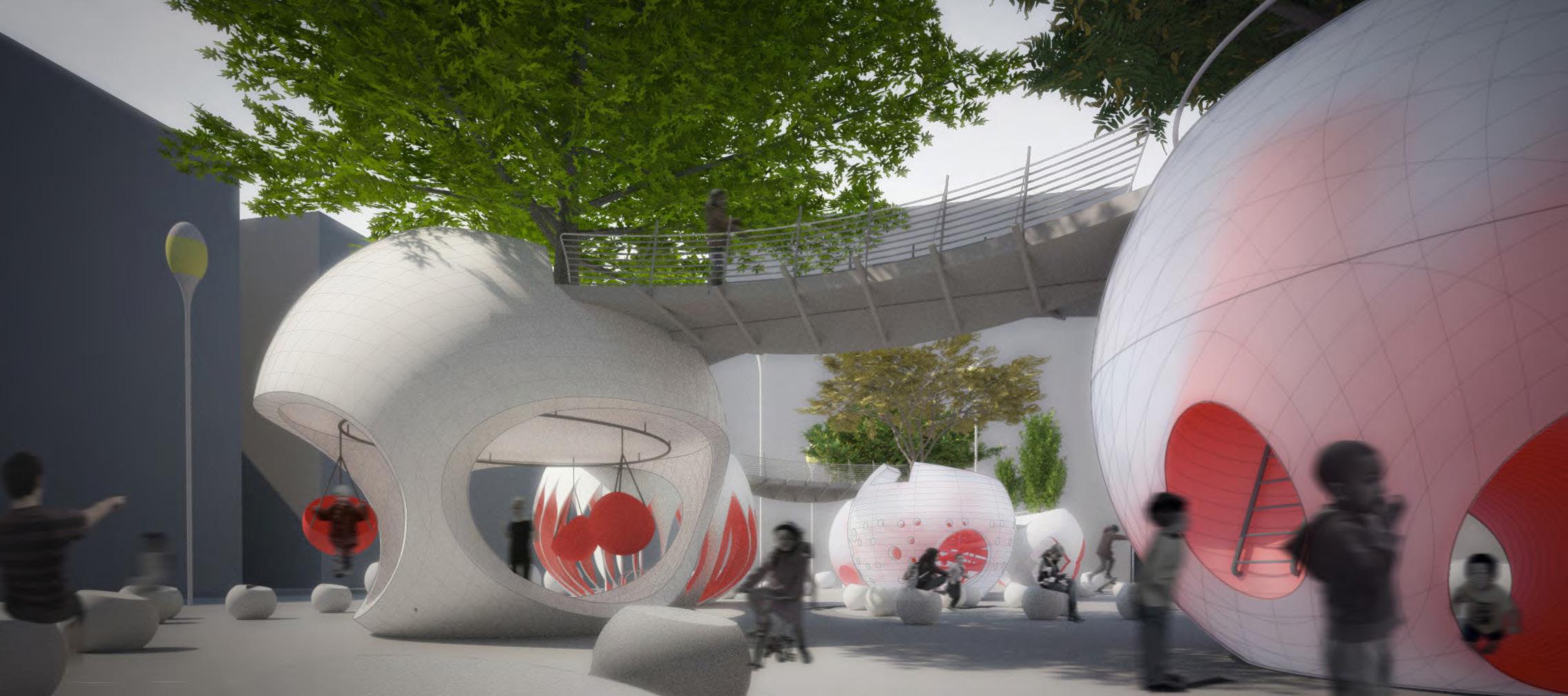 PlantaBALL parks are an interactive, multi functional approach intended to engage children and adults in an outdoor recreational setting. This new model of equipment will promote and stimulate fun for the future of play, and create a series of miniature worlds for children to inhabit in the city.