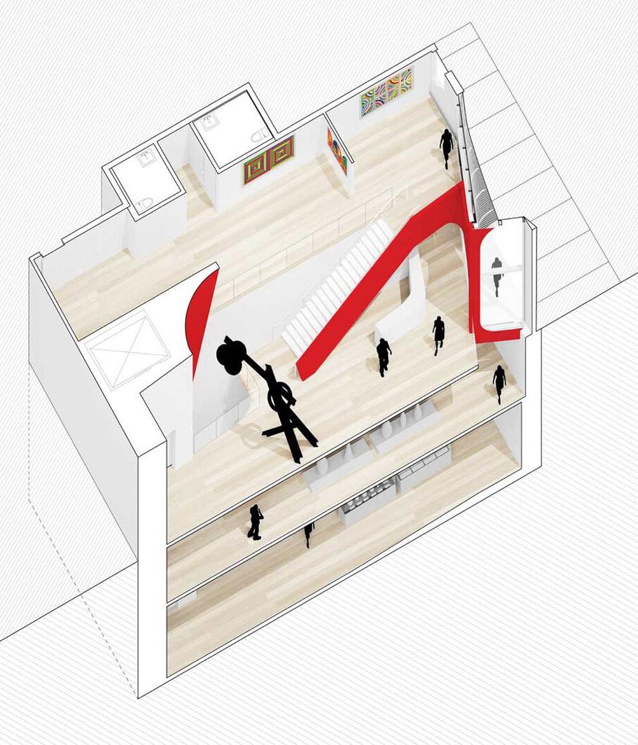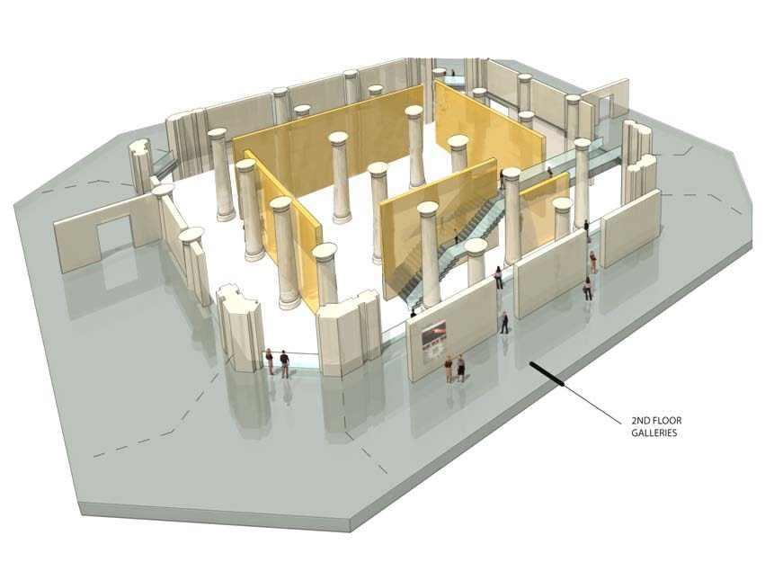The design for the Italian American Museum is an innovative structure with two above-ground and two below-ground levels. A central skylight and a four-story atrium are key elements, allowing natural light to illuminate the lower floors, creating a visually and functionally cohesive space.
