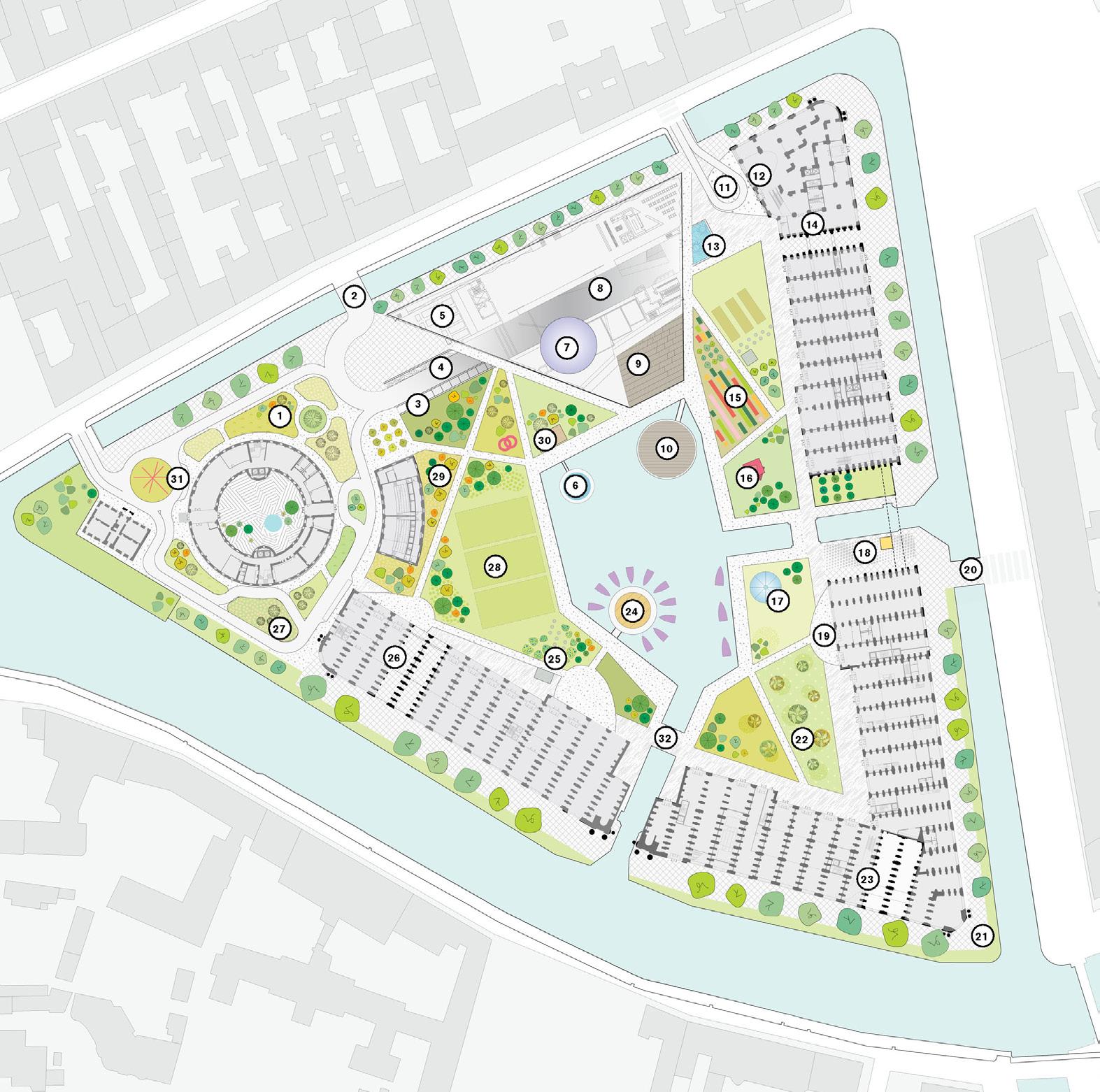 The site for this oasis is an 8-hectare historical landmark island bordered by canals in the heart of a major metropolitan area within 20-minutes walking distance of major cultural sites and tourist attractions. Conceived in 1719, it became a military port in 1721 and remained in military possession, closed to the general public, for 300 years. We have imagined this site a microcosm of wider urban context a cultural “city within the city” that sponsors a vast range of public spaces and programs, from the visual and performing arts, to new technologies, to education, to markets and a hotel. Rather than adding new architectural statements, however, we have worked primarily through subtraction to carve from the historic warehouses their amazing potential for public and cultural activity, retaining as much public outdoor space as possible.