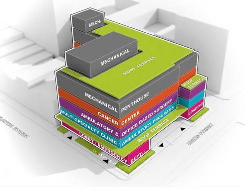 As a leading member of the architectural team I was involved in this project from its intial stage through the end of design development phase to the submission for approval by the city authorities. I was responsible for defining the overall massing of the building, constrained by the zoning envelope as well as producing typical floor layouts and key exterior and interior details in Revit. My responsibilities also included coordination with structural, mechanical and zoning and medical planning consultants.