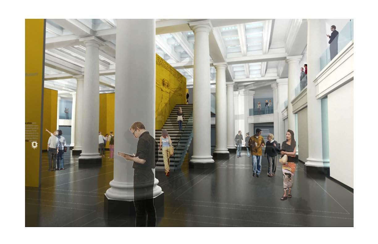 A key feature of the renovation is the new grand staircase and glass bridge, which visually and functionally enhance the visitor experience by providing a seamless connection between the lobby and the upper galleries. This approach aligns with the principle of creating fluid, accessible spaces that encourage exploration and interaction with the exhibits.
