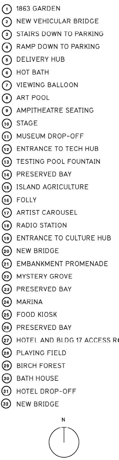 The site for this oasis is an 8-hectare historical landmark island bordered by canals in the heart of a major metropolitan area within 20-minutes walking distance of major cultural sites and tourist attractions. Conceived in 1719, it became a military port in 1721 and remained in military possession, closed to the general public, for 300 years. We have imagined this site a microcosm of wider urban context a cultural “city within the city” that sponsors a vast range of public spaces and programs, from the visual and performing arts, to new technologies, to education, to markets and a hotel. Rather than adding new architectural statements, however, we have worked primarily through subtraction to carve from the historic warehouses their amazing potential for public and cultural activity, retaining as much public outdoor space as possible.