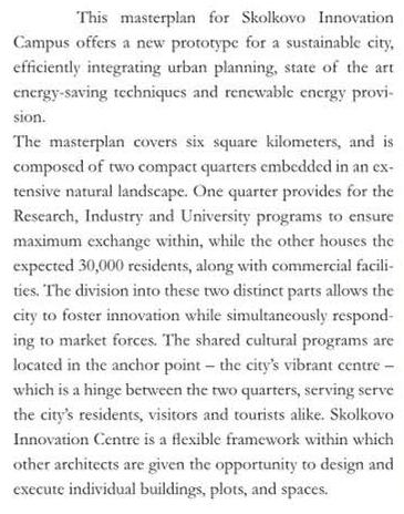 For the Skolovo competition, I functioned as the design team architect, fully immersed in the project from the early stages of the design to the preparation and delivery of the final submission. My core responsibilities included research and analysis of the existing conditions, site strategy, phasing of the development and sustainability approaches. I was also responsible for the coordination with our engineering consultant (WSP) and local stakeholders.