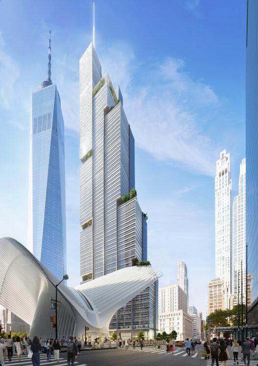 The first building in the development, a 600,000-square-foot, 28-story high-rise, contains 539 units and rises from a three-story retail and parking garage podium. The façade animates the urban streetscape with a vertical composition of light-colored, precast panels. The second, shorter building, a 170,000-square-foot, 14-story mid-rise, contains 130 units and will incorporate community facility space. Its façade is a horizontal composition of variegated brick and strip windows. Both buildings have a mix of studios to three-bedroom apartments. The project features private garden apartments at the setback above the podium, and tenant amenity spaces atop the podium and on the rooftops of both buildings.