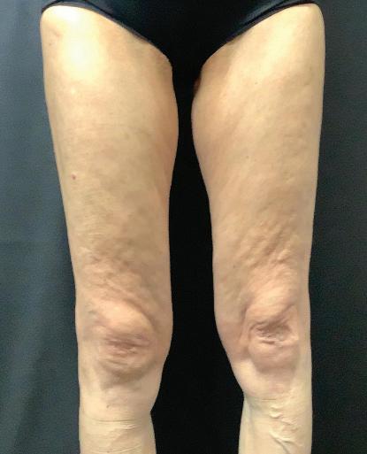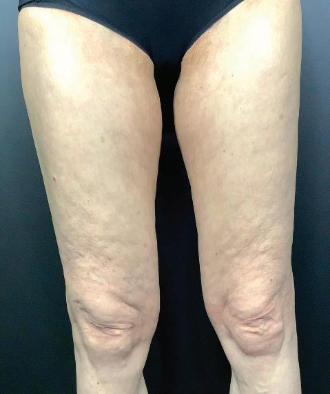 aged 40 to 65, with significant reductions in cellulite, improved skin firmness, and visible tightening in challenging areas such as arms, abdomen, knees, and inner thighs.