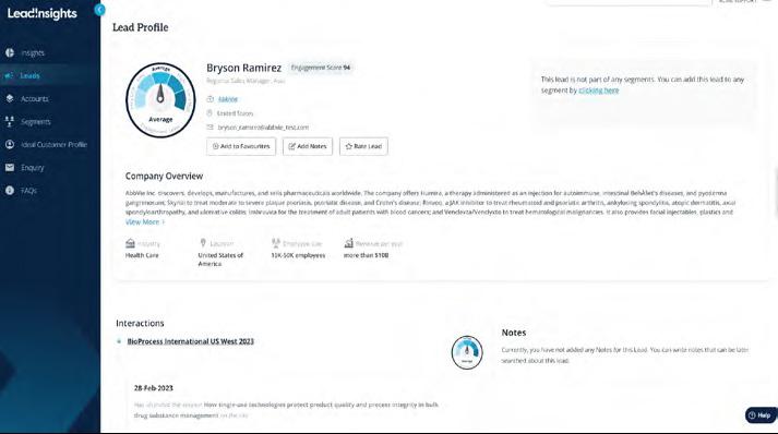 • Leads enriched and segmented based on ideal customer profile and behavior; ready for prospecting