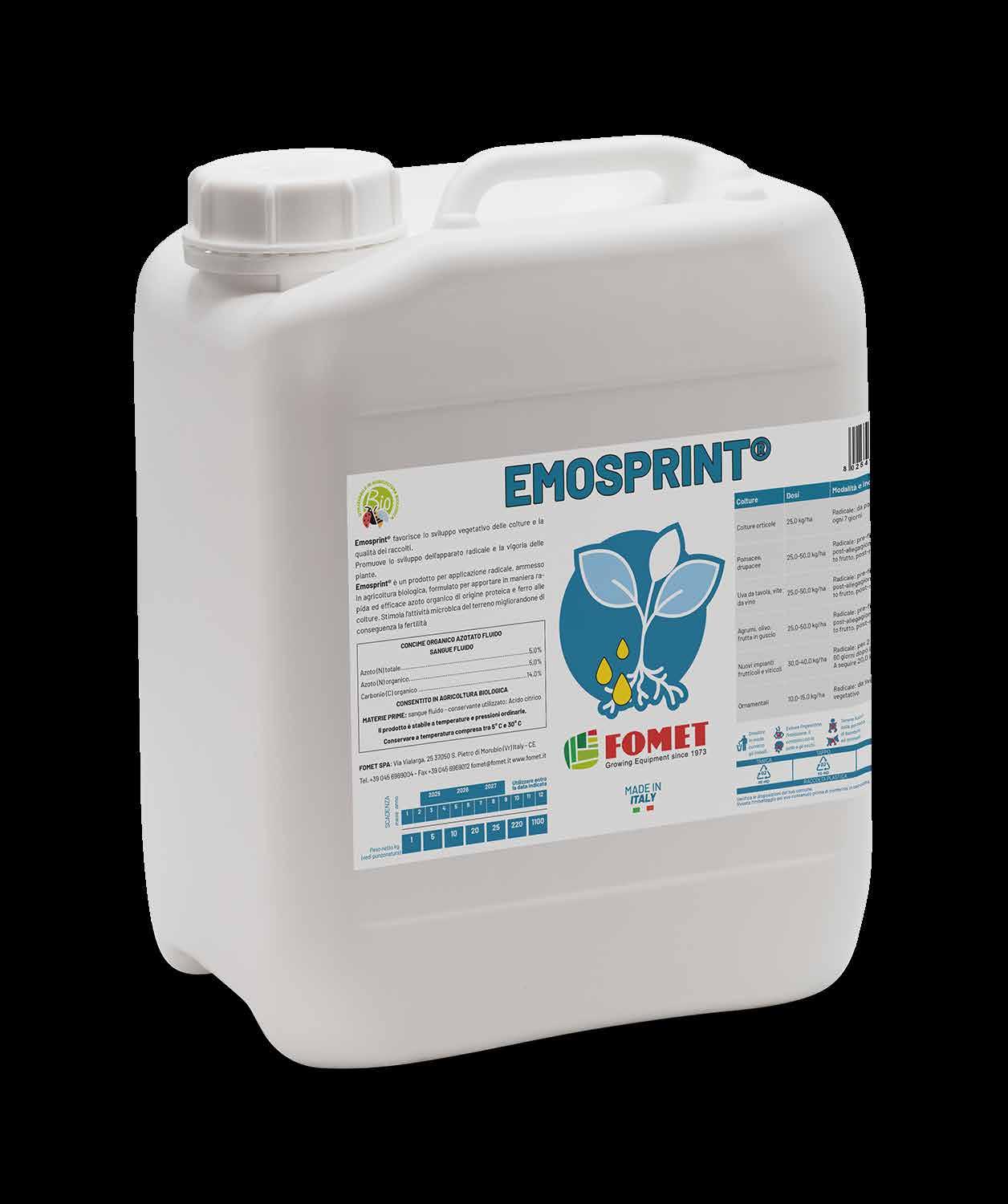 Emosprint® è un prodotto per applicazione radicale, ammesso in agricoltura biologica, formulato per apportare in maniera rapida ed efficace azoto organico di origine proteica e ferro alle colture.
