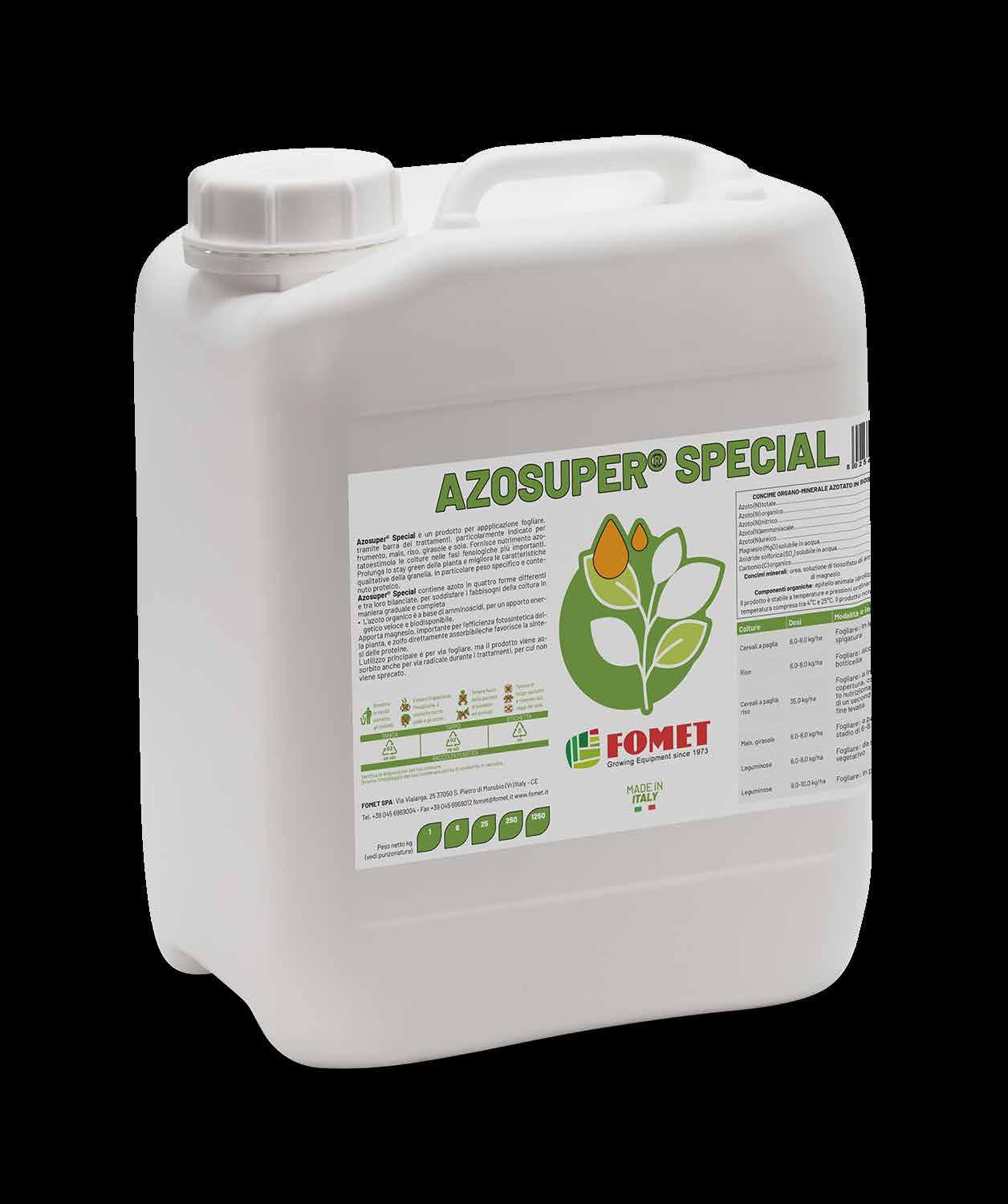 Azosuper Special® è un prodotto per appplicazione fogliare, tramite barra dei trattamenti, particolarmente indicato per frumento, mais, riso, girasole e soia. Fornisce nutrimento azotato e stimola le colture nelle fasi fenologiche più importanti. Prolunga stay green della pianta e migliora le caratteristiche qualitative della granella, in particolare peso specifico e contenuto proteico.
