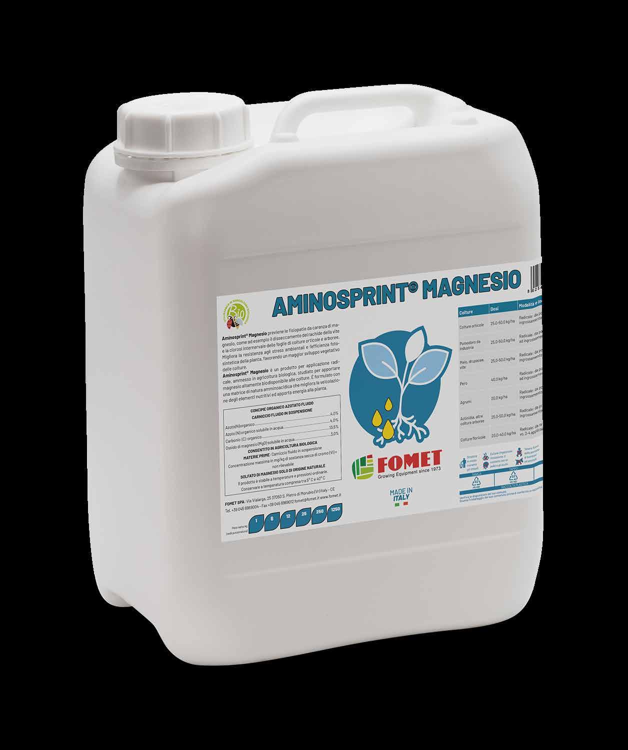 Aminosprint® Magnesio è un prodotto per applicazione radicale, ammesso in agricoltura biologica, studiato per apportare magne- sio altamente biodisponibile alle colture. È formulato con una matrice di natura amminoacidica che migliora la veicolazione degli elementi nutritivi ed apporta energia alla pianta.