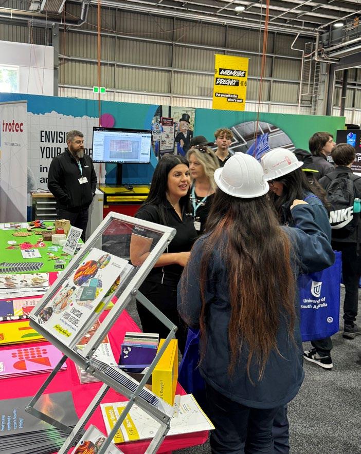 The Sign & Print Career Connections program promoting careers in the print, sign, and graphics industries has been rolling out across Australia. Launched officially at the Victorian Careers & Employment Expo on 15 March 2024, the initiative attracted over 8,000 students, parents, and educators. The Melbourne event featured an engaging stand and ‘Try-A-Trade’ activities, with support from key volunteers Tina Mavris and John Watters from the Australian Schools Industry Partnership (AusSIP).