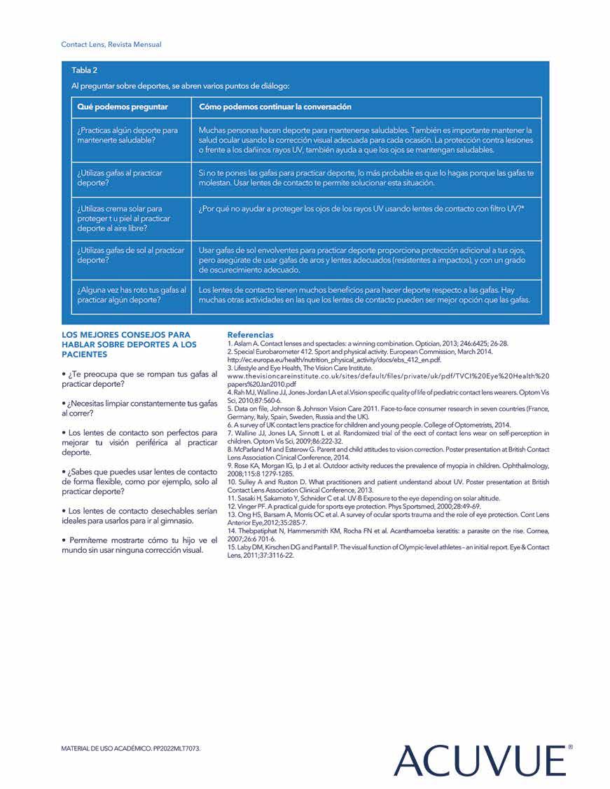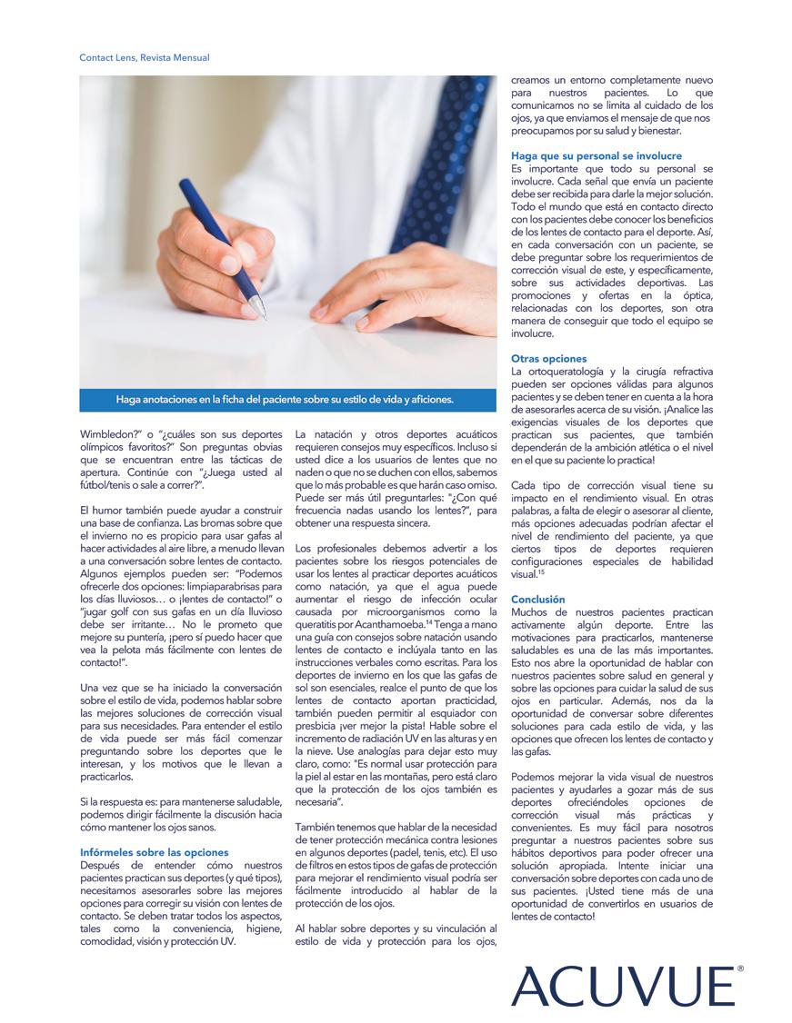 76 Conversaciones en el establecimiento sanitario de óptica: Los deportes y los lentes de contacto