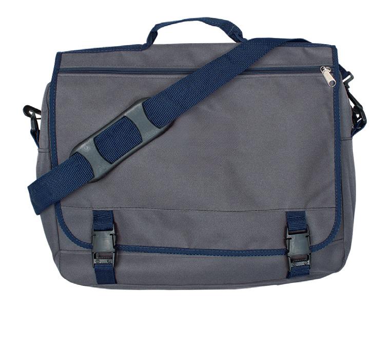Made from durable 600 denier polyester, this bag features secretarial pockets under the front flap and a shoulder strap for easy carrying. Ideal for everyday use, meetings, or events. Many colors available. 16” x 12” x 3” (W/H/D). Min. 100.