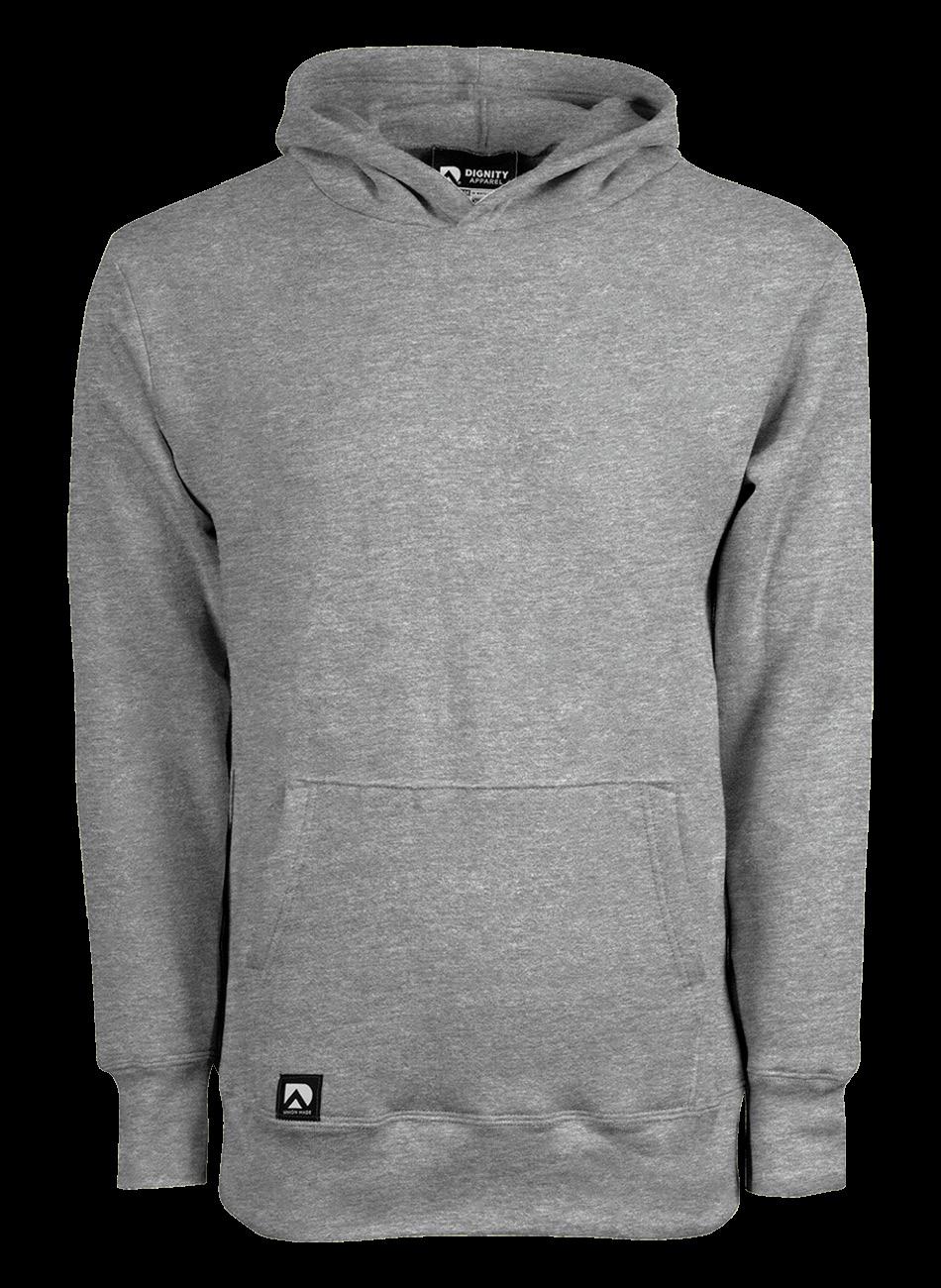 Every Dignity Apparel t-shirt features a tagless union stamp neck label and the Union-Made Dignity Apparel hem tag.
