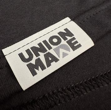Every Dignity Apparel t-shirt features a tagless union stamp neck label and the Union-Made Dignity Apparel hem tag.