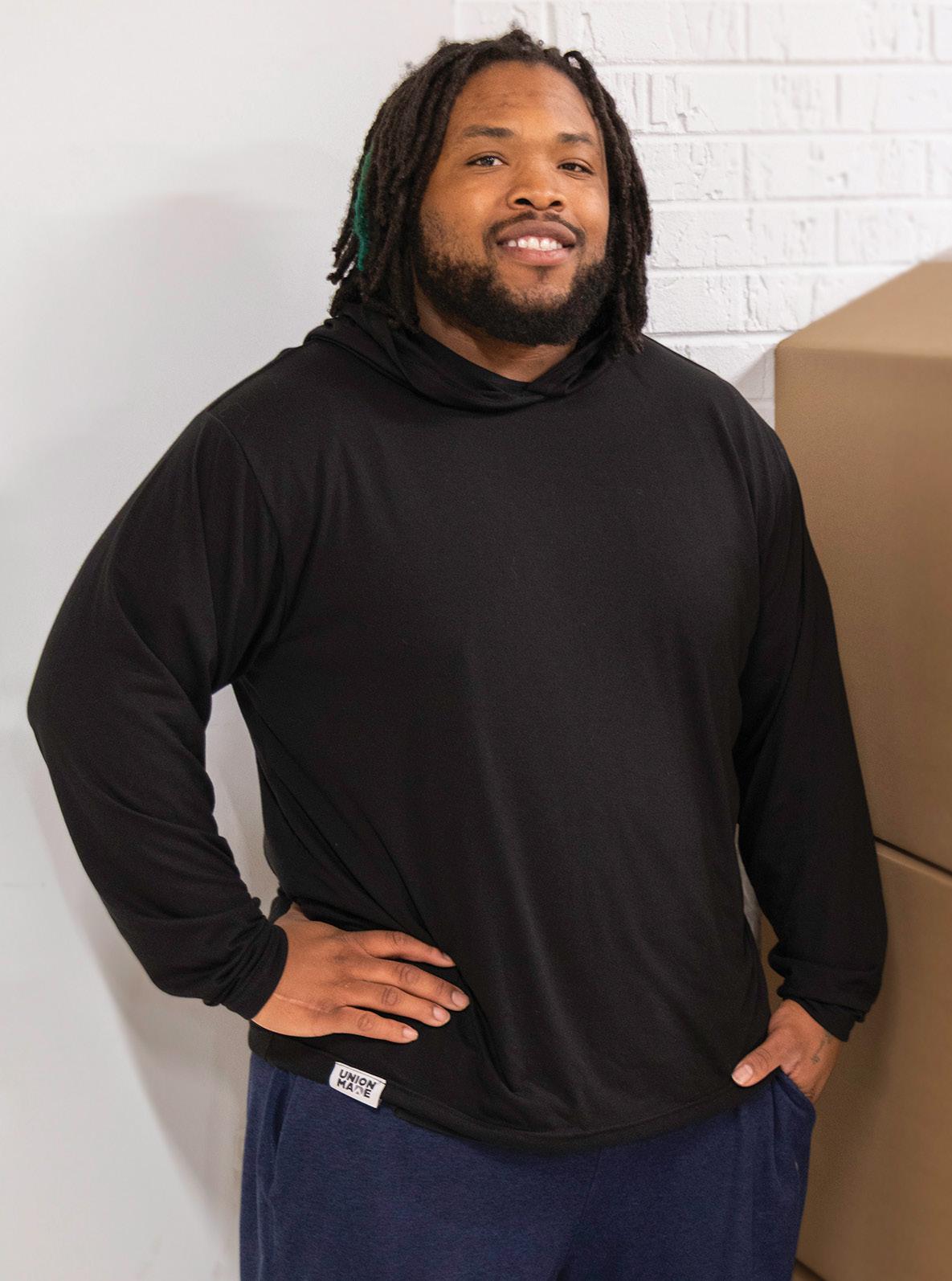 Larry | Height: 5’6” | Size: XL | Color: Black | Triblend Sport Hooded Long Sleeve