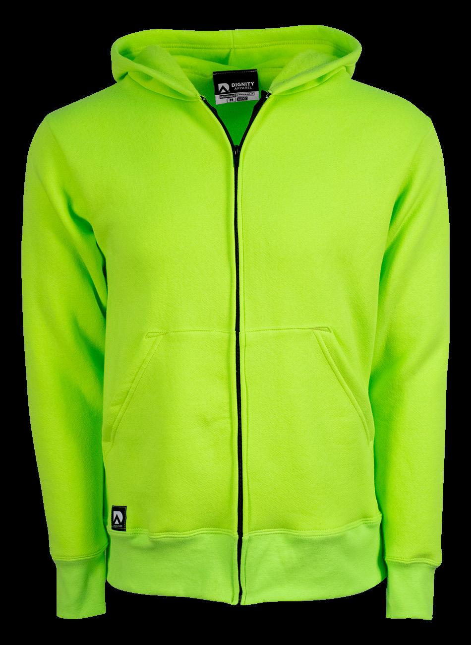 A versatile full-zip hoodie that’s easy to layer and built for movement. Made from a soft, 9 oz 80/20 cotton/poly fabric with generous fit. Heavyweight option available for colder conditions. Available colors include Safety Green, Black, Navy, Charcoal Heather, Purple, and Red. 12 oz available in only Black. Sizes S-4XL.