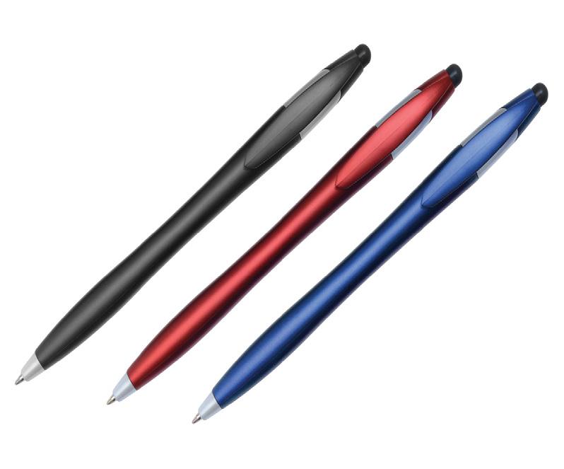 A practical pen for everyday use, this twist-action pen features a touchscreen stylus on top for added functionality. Comes in seven color options. Min. 300. ITEM# AS2034