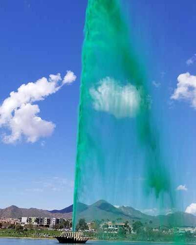 The tradition will continue this year on Sunday, March 17, at noon, when 55 gallons of environmentally friendly dye will be injected into the fountain’s jet spray, thereby turning the water emerald green. Built in 1970 in Zurich, Switzerland, by Fountain Hills developer Robert P. McCulloch, the fountain reaches a full height of 560 feet, making it the fourth tallest in the world.