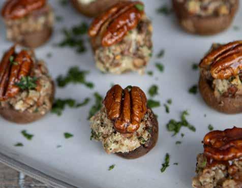 These little beauties are stuffed with an irresistible filling of mushrooms, pecans and goat cheese, then topped with honeyed pecans. They make for an absolutely delicious appetizer for any occasion!