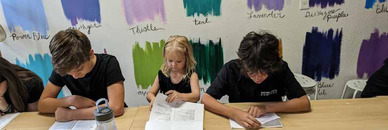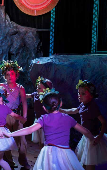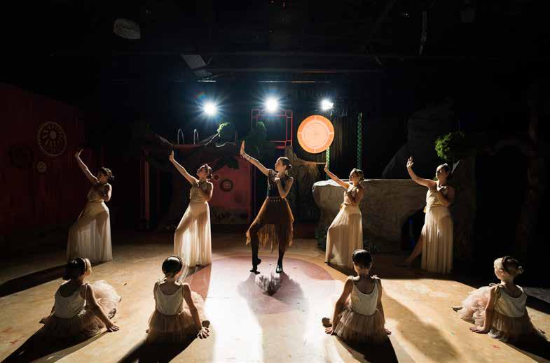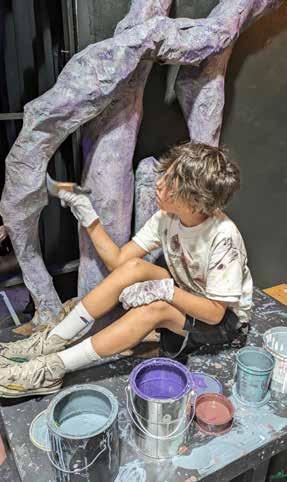 hair and makeup room; and an arts and crafts space. Lavelle serves as a creative director for the children, and there are opportunities for ages 3 through adult. She also hosts art night for the parents of the young actors. A student-created art piece is featured and memorialized in a framed wall hanging for each production.