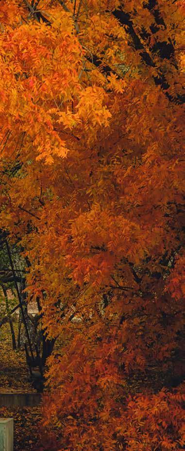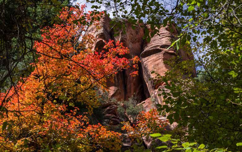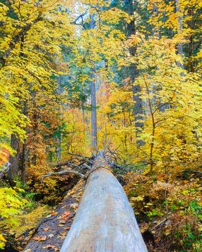 backdrop. The diverse elevation range means hikers can often find fall color by adjusting their altitude. The 10- to 12-mile round trip to Bassett Peak showcases the area’s rugged beauty, from colorful creekside paths to highelevation vistas. The interplay of late fall colors and possible early winter conditions creates a unique landscape.