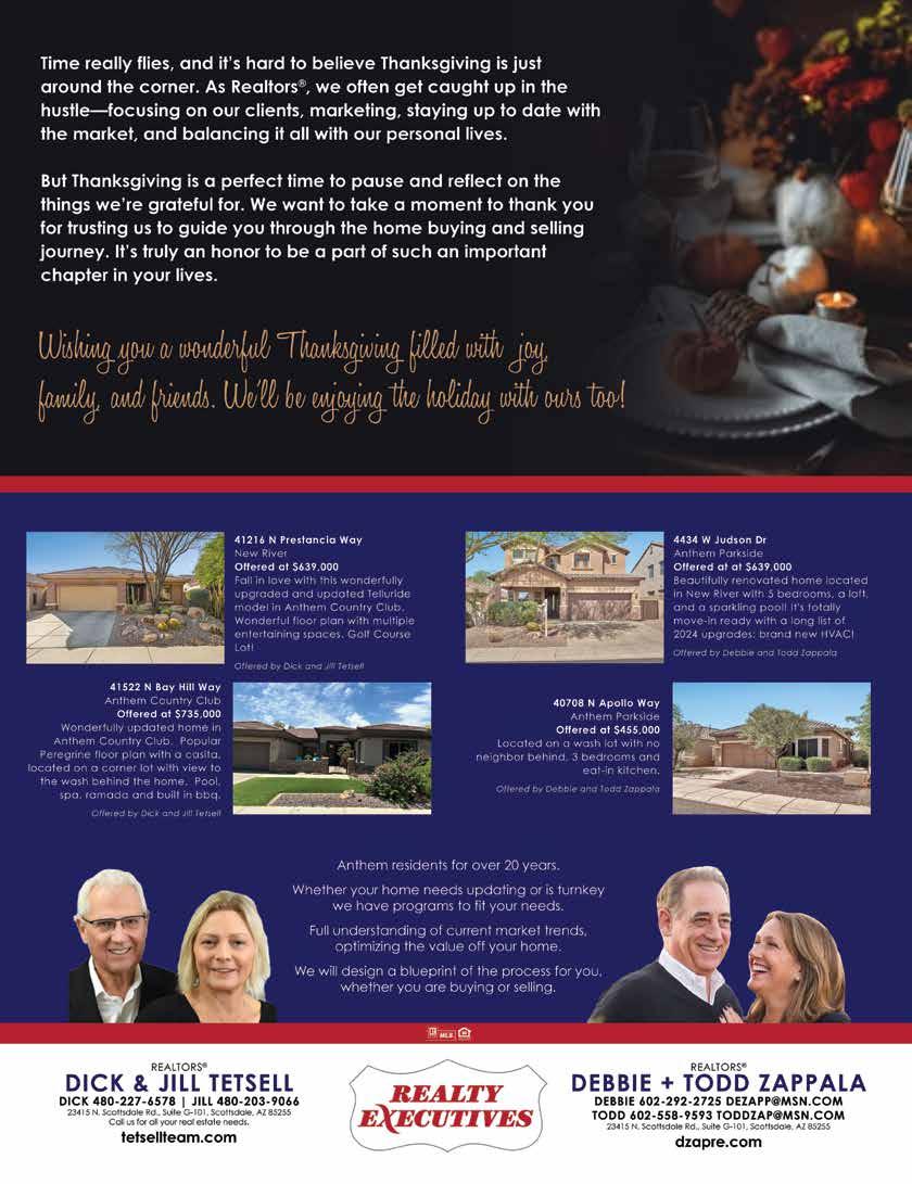 As you flip through the pages of this month’s issue, I hope you’ll be inspired to explore the beauty of our state, honor those who have served and embrace the spirit of gratitude that defines this season. Whether you’re attending a local parade, hiking through golden aspen groves or simply enjoying a quiet moment with loved ones, take time to appreciate the unique charm of autumn in Arizona.