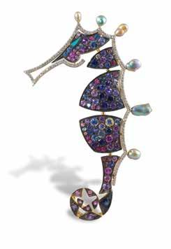 That creative freedom, combined with the technical demands of working for high-jewelry houses, forged something unusual: artists who could execute at museumcollection levels but weren’t afraid to put a jeweled frog on your shoulder.