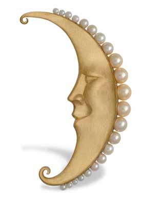 Which brings us back to that frog. The 2009 AGTA Spectrum Award-winning brooch combines 18-karat white and yellow gold with layered opals, moonstones and pink sapphires in a fully three-dimensional animal form. It requires complex stone-setting angles and structural engineering in two colors of gold. It’s also, unmistakably, charming.