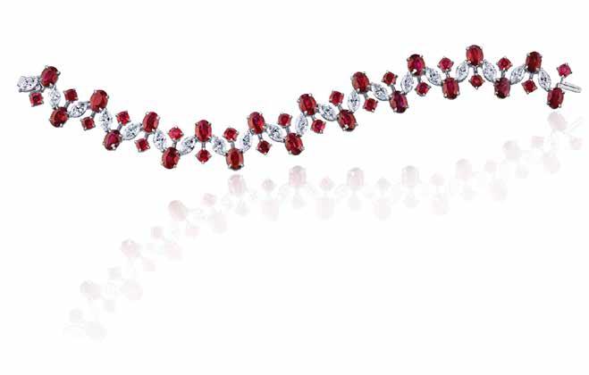 20 oval shape rubies (21.12 ctw) and and 20 cushion cut rubies (6.13 ctw) and 20 marquis shape diamonds (8.10 ctw) set in platinum