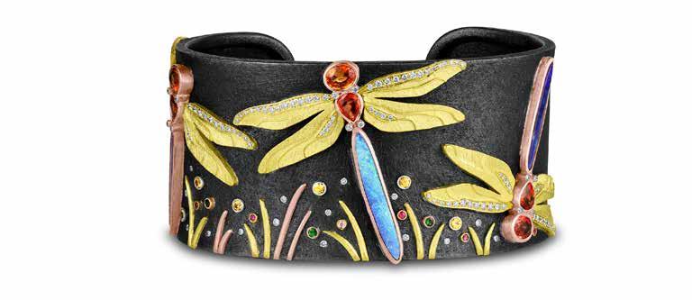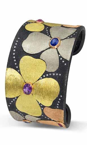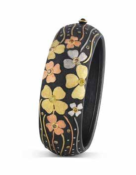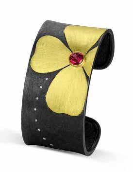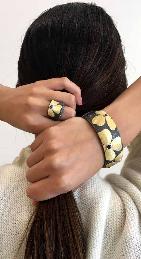 “What I think really makes him stand out in the industry is that he experiments all the time,” she continues. “Whether it’s with metals — and remember, he’s a selftaught goldsmith — or with other materials like wood, he’s always pushing boundaries. And people love seeing that. It’s so different.”