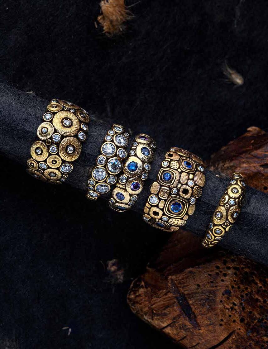 Today, the pieces inside those pages — where form and space triumph over gemstone size, where metal becomes sculpture — define his life’s work. For over a generation, this master jeweler has treated gold, platinum and oxidized silver not as settings for stones, but as his primary palette, layering them with the fluidity of watercolor and the restraint of fine art. In an industry obsessed with carat weight and sparkle, Alishan creates what the cognoscenti call “anti-bling” — jewelry for the confident collector who already owns the classics and now seeks something singular.