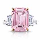 8.09 carat emerald pink sapphire with diamonds .89 carats set in a handmade platinum and rose gold ring