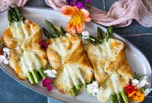 What better way is there to welcome spring than with these delicious asparagus prosciutto wraps? They are stunning to look at and highlight a beautiful spring vegetable — asparagus. They are easy to make but look like you've worked all day on them. I love the combination of white cheddar cheese, prosciutto and asparagus, all wrapped together in puff pastry then glazed with a honey-tinged egg wash. Add some edible flowers to your platter to make it pop!