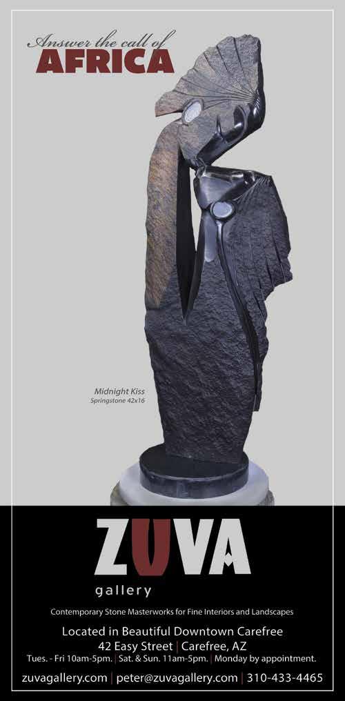 4 imagesarizona.com March 2023 ADELANTE 7212 Ho Hum Rd. Suite 14 480-488-1285 STEP INTO THE CAREFREE ART GALLERIES THIRD THURSDAY ARTWALK MARCH 16 FROM 4-7PM Collect your next masterpiece in Carefree! GALLERY MICHÉLE 100 Easy Steet Suite 1 480-313-8447 GRACE RENEE GALLERY 7212 E. Ho Hum Rd. Suite 7 480-575-8080 MONIZE FINE ART STUDIO AND GALLERY 42 Easy Street 602-647-8421 RC GORMAN NAVAJO GALLERY AT STUDIOWEST 37555 N. Hum Rd. Suite 101 STEVE STENTO GALLERY 42 Easy Street 623-330-7647 SUE BICKERDYKE INTERIORS & ART GALLERY 36889 N. Tom Darlington Drive THUNDERBIRD ARTISTS GALLERY 99 Easy Street, Suite 235 WILD HOLLY GALLERY 22 Easy Street, Suite 235 480-595-8757 ZUVA GALLERY 42 Easy Street 310-433-4465