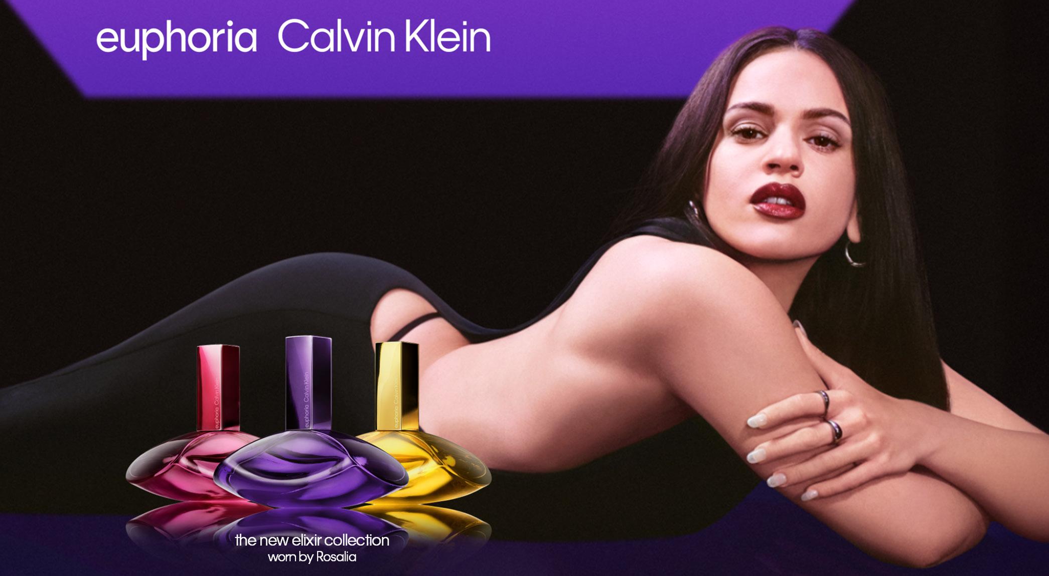 Elixirs, una collezione inedita di parfum intense composta da tre creazioni olfattive distinte. Dopo il suo debutto con Calvin Klein Underwear nel settembre 2025, Rosalía è ora protagonista della campagna Calvin Klein Fragrances, realizzata dal fotografo Carlijn Jacobs. Nei visual, la cantante amplifica lo spirito di Euphoria – femminile, sensuale e sicuro di sé – grazie alla sua capacità unica di evocare emozioni attraverso movimento e performance.