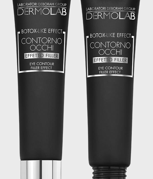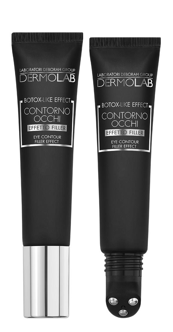 Contorno Occhi Botox-Like Effect leviga, rimpolpa e illumina lo sguardo con un pool di acidi ialuronici di diverso peso molecolare, un peptide a effetto filler e un estratto marino elasticizzante. L’applicatore con tre roller in acciaio stimola la microcircolazione.