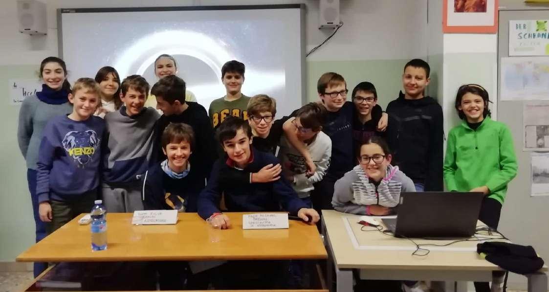 A dicembre si è concluso il corso di Astronomia. Le prime quattro lezioni sono state tenute da un esperto del Planetario di Lecco, Loris Lazzati, sugli argomenti: “Il Sole e la Luna”, “In vacanza nel sistema solare”, “La via Lattea”, “Nel mondo delle galassie: l’universo su grande scala”. L’ultima lezione ha visto invece protagonisti due nostri ex alunni che ora frequentano il Liceo Scientifico Sportivo, Michael e Filip che si sono occupati dei buchi neri. Tutti i relatori hanno saputo interessare e coinvolgere i partecipanti, che si sono messi in gioco, cercando le risposte alle questioni, spesso difficili, che venivano loro proposte, dimostrando buone conoscenze e un’ottima capacità di ragionamento. Michael e Filip hanno concluso il loro intervento con un quiz a squadre che ha scatenato una bella competizione tra i ragazzi e le ragazze del corso. Negli scorsi anni il corso era articolato su tre livelli: il primo è il livello base che è stato proposto quest’anno, il secondo approfondisce il discorso sulle stelle, sulla misura dell’Universo e affronta questioni come le missioni spaziali e la possibilità che ci siano esopianeti abitabili e altra vita fuori dal nostro pianeta. Il terzo insegna a riconoscere le fake news, affronta il terrapiattismo e ci dice che possiamo appassionarci alla conoscenza dell’Universo anche attraverso la fantascienza. Ora speriamo di riprendere il ritmo e di riproporre nei prossimi anni i tre cicli di lezioni.