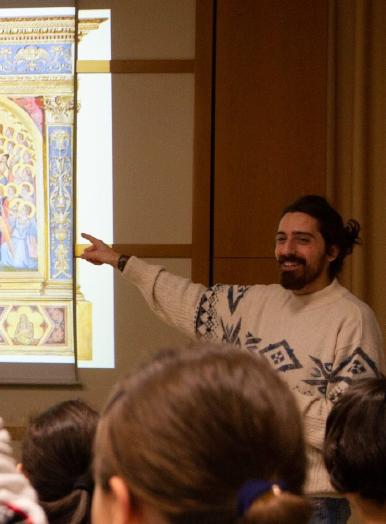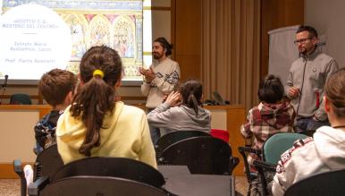"Giotto e il mistero del colore" è la lezione che hanno seguito le prime medie e tenuta dall'esperto prof. Pierre Bonaretti, docente e storico dell'arte cervese, che a seguito di studi specifici nel mondo dell'arte medievale, ha coltivato una particolare attenzione verso il tema giottesco. Bonaretti, 34enne, è laureato col massimo dei voti in Didattica dell'Arte all'Accademia di Brera di Milano e in Storia dell'Arte all'Università Carlo Bo di Urbino. E' docente e consulente, ricercatore ed appassionato, continuamente narratore tra la gente dei grandi temi di storia dell'arte, facendosi portatore di aneddoti, approfondimenti e curiosità.