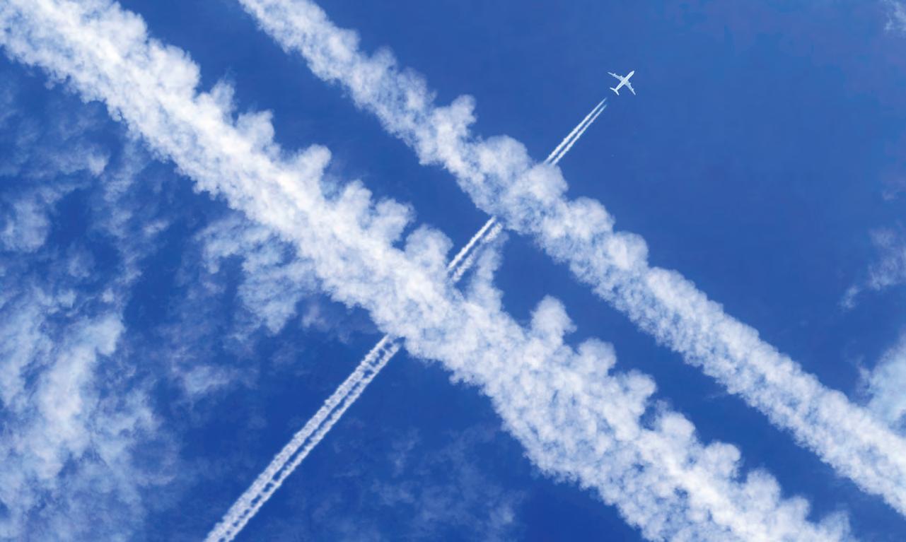 Carbon dioxide emissions are only part of the story when it comes to aviation’s climate change contribution. Unlike the invisible greenhouse gas, contrails criss-crossing the sky are a much more obvious sign of planes’ environmental impact – and they are now known to cause heating as they reflect warming radiation back to Earth.