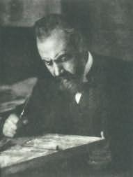 Brustbild eines zeichnenden Mannes im Dreiviertelprofil nach rechts, um 1879