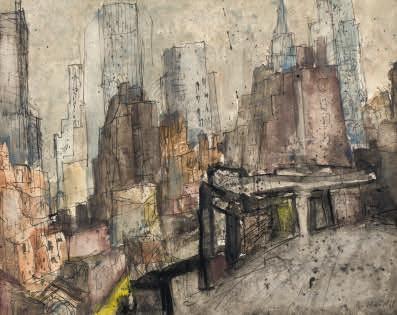 Auf Rahmenrückseite bezeichnet und datiert: Parkgarage New York, aquarellierte Federzeichnung 71
