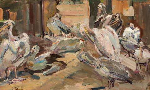 Auch die Völkerschauen und Kolonialausstellungen könnten sie inspiriert haben. Das Phänomen breitete sich von Hamburg über viele europäische Großstädte aus und fand vornehmlich in Tiergärten und im Zirkus statt. In den 1930er-Jahren stellte sich ein enormer Besucherandrang ein, der maßgeblich zur Verbreitung rassistischen Gedankengutes beitrug. Auch wenn nicht gesichert ist, dass Bresslern-Roth eine derartige Zurschaustellung menschlichen Seins gesehen hat, liegt dies doch nahe. Studienzwecke führten sie immer wieder in Tierparks, wo sie von dem lebenden Tier ihre Skizzen nahm. In ihrer Denkweise hatten diese Völkerschauen jedoch nicht unbedingt einen rassistischen Hintergrund. Bresslern-Roth empfand es eher als Ideal, Mensch und Tier als gleichwertige Partner in der Natur anzusiedeln. Die Vermenschlichung der von ihr portraitierten Tiere und deren Aufladung mit menschlichen Themen und Emotionen ist schließlich die logische Konsequenz in ihrer Malerei. (Petra Hammer-Maier)